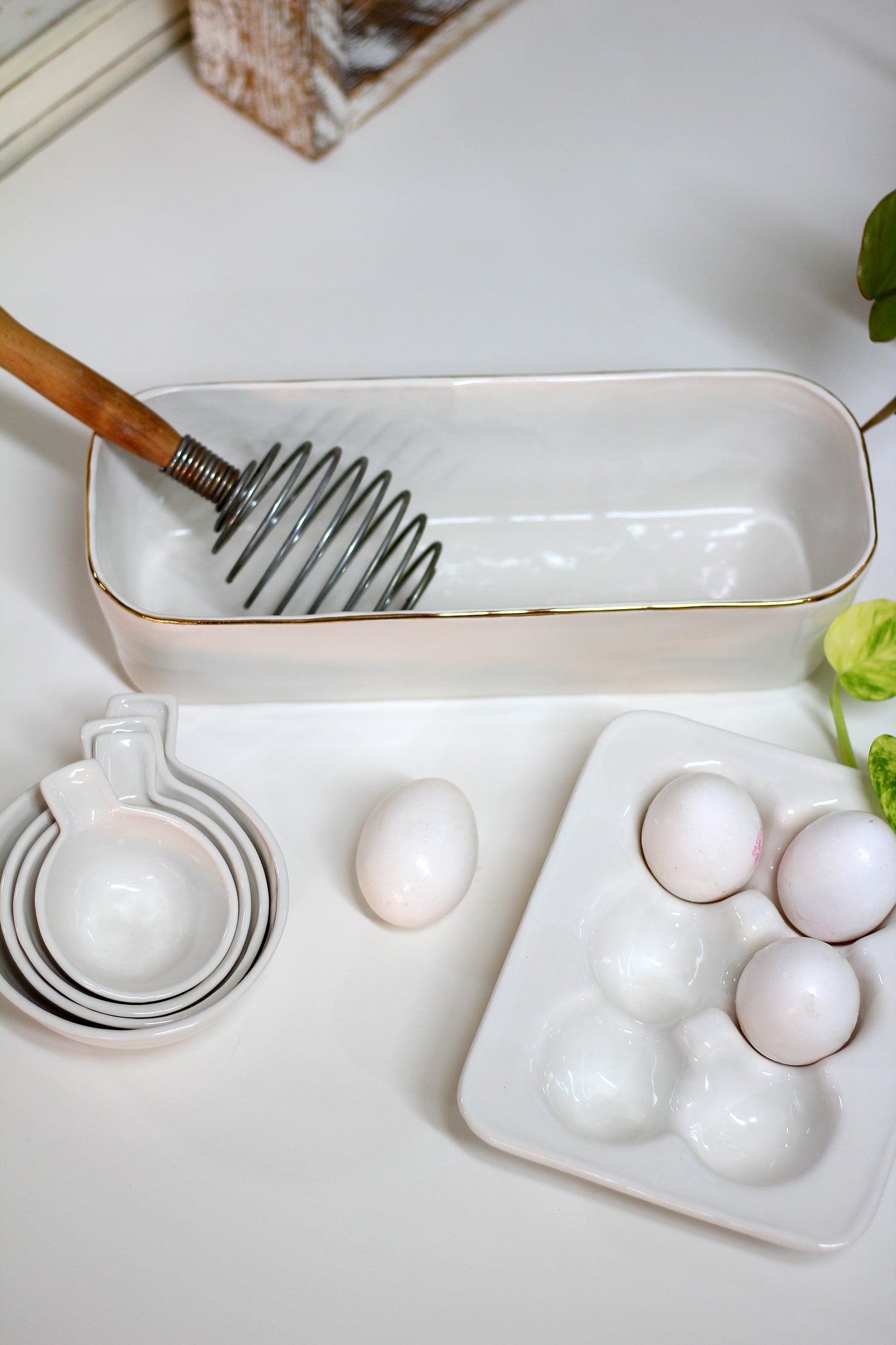 מגש אובלי מקרמיקה - לבן עם פס בזהב