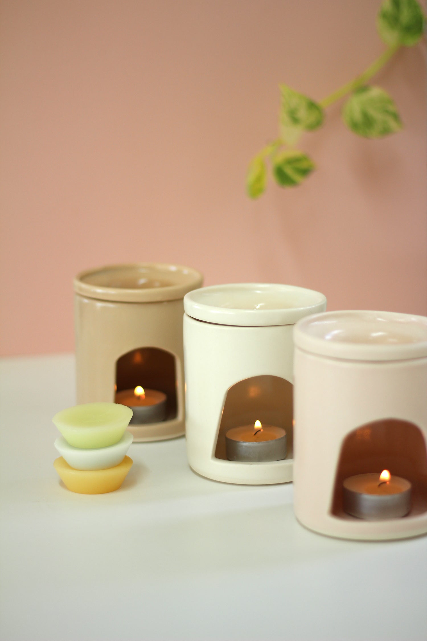 מבער מקרמיקה - דגם קשת בצבע שמנת, וורוד או לאטה בגימור מט.