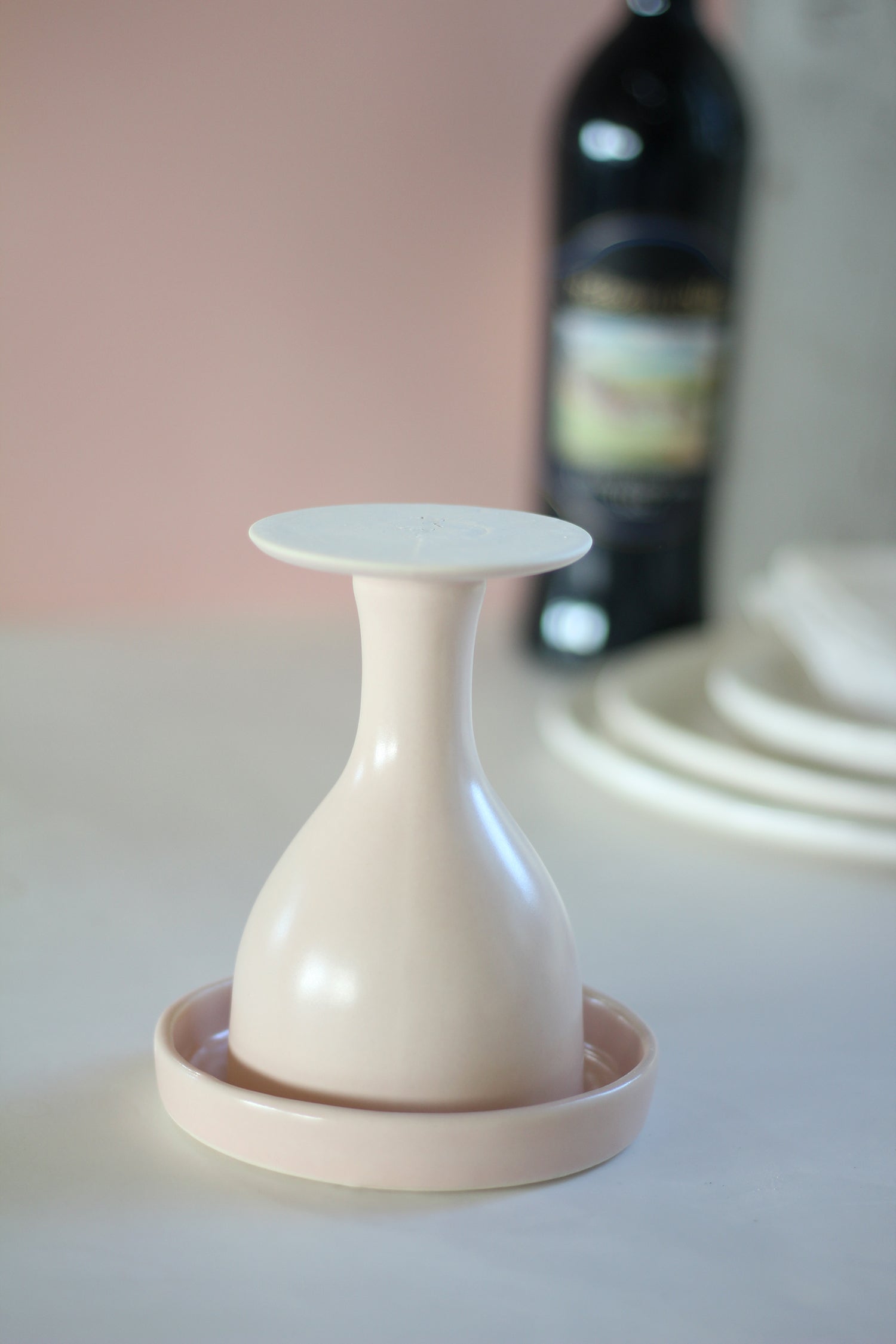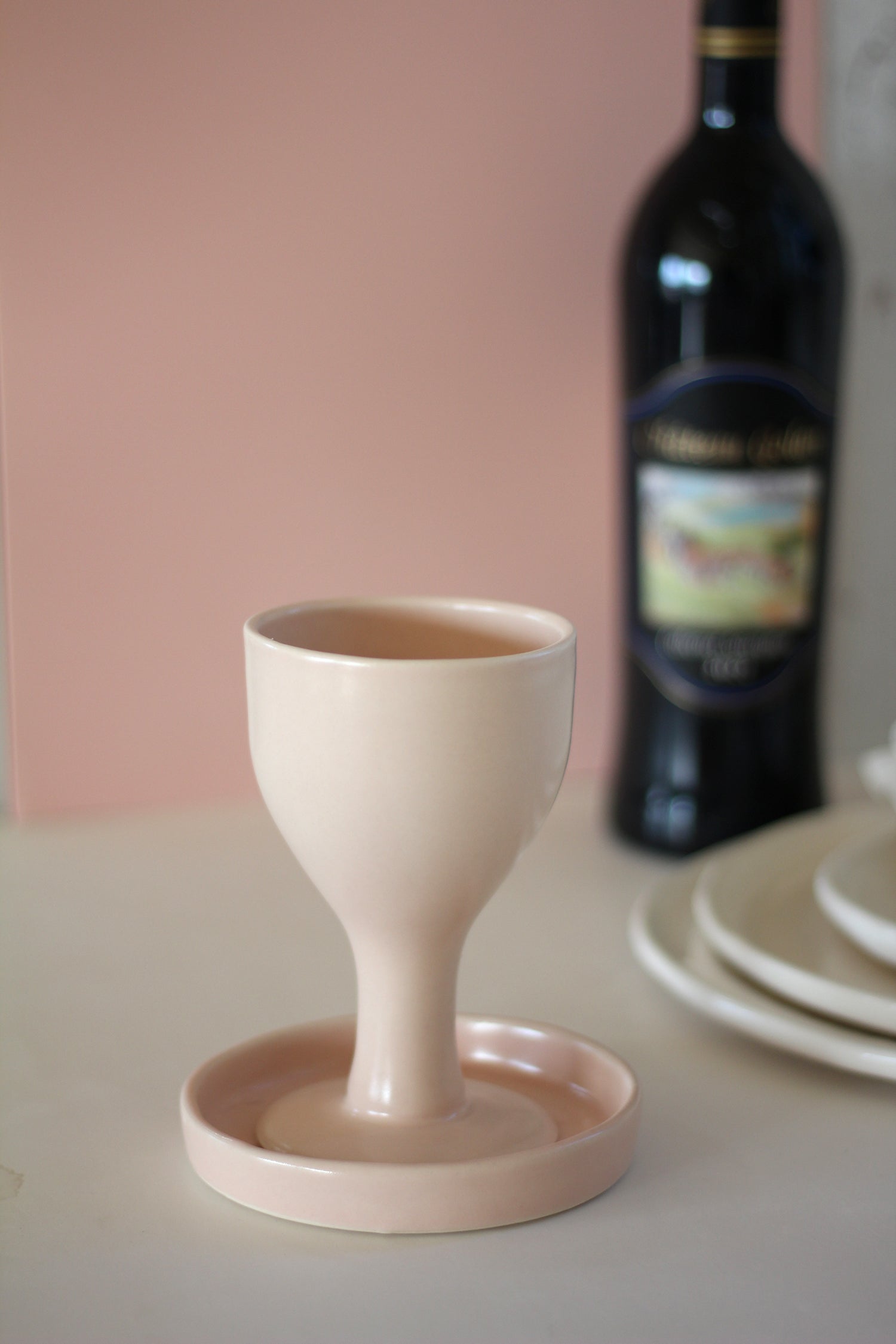 גביע גבוה ובעל נוכחות, מקרמיקה בעבודת יד, בגלזורה בצבע ורוד בגימור מט
